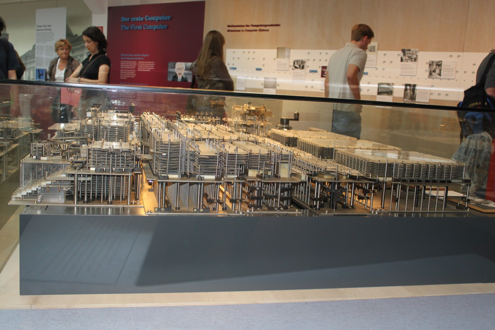 This is the Z1, a computer from 1938! It had, like modern computers, an arithmetic unit, a memory unit, and input and output units. It used binary numbers and punch-tape programming. |
